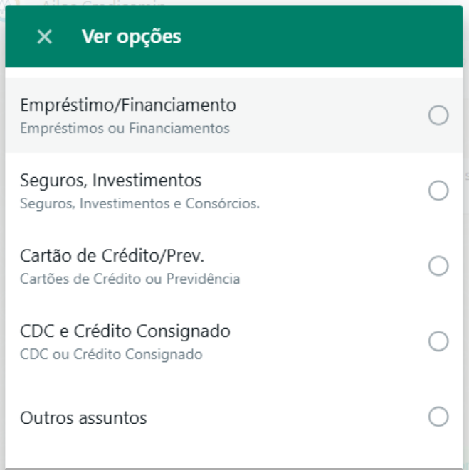 Ao clicar nesse botão, o usuário visualizará todas as opções disponíveis para continuar o atendimento.